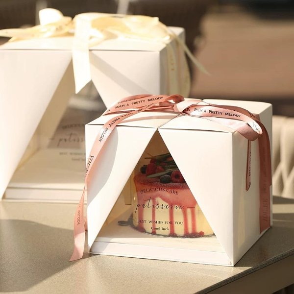 Both white cardstock and PET materials comply with food contact standards, ensuring safe and hygienic pastry packaging.