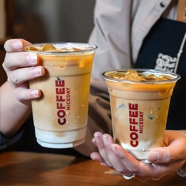 AT PACK 16oz PET PP Plastic Coffee Cups with Strawless Lids for Cafe Shops Serving Cold Beverages Like Iced Coffee Mineral Water