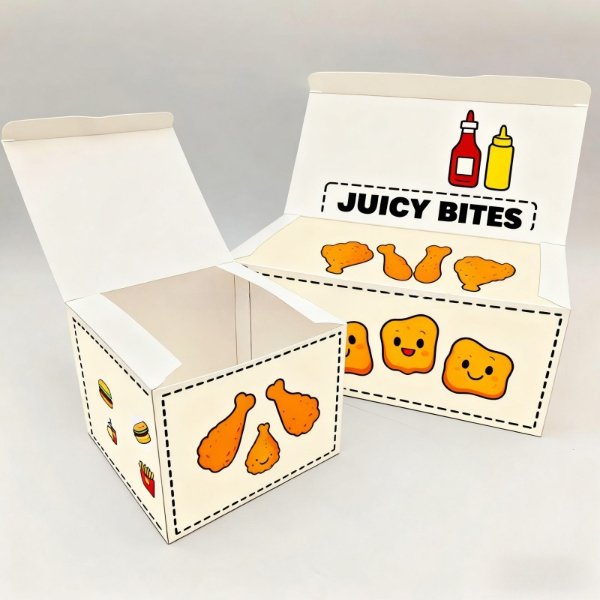 Biodegradable Disposable Paper Fast Food Box Square-shaped Containers for Chicken Fries Stamped Print Fast Food Packaging