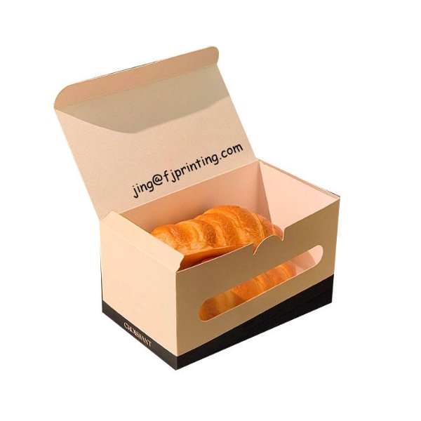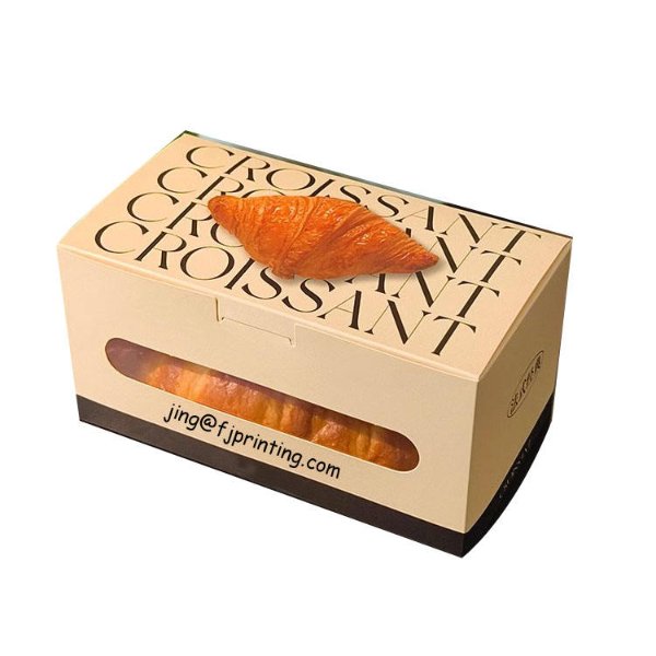 Custom Printing Window Cut Foldable Greaseproof Food Grade Croissant Packaging Paper Box