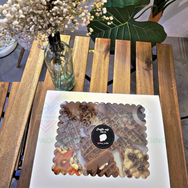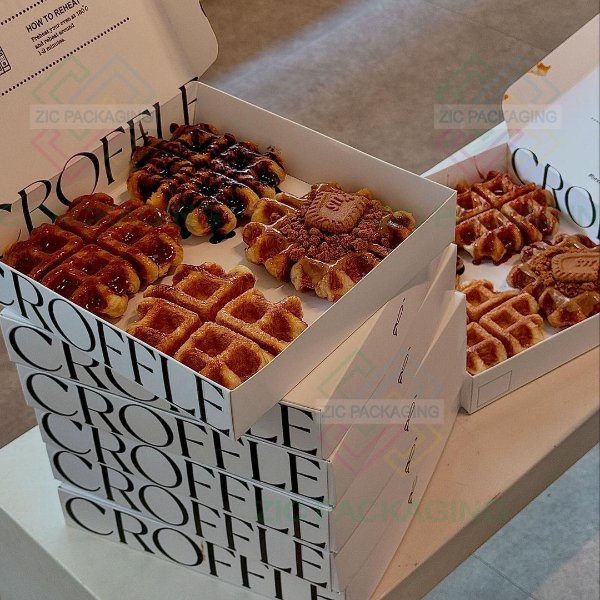 Customized Logo Bakery Bread Donut Pastry Food Paper Biscuits Cookie Croissant Croffle Waffle Packaging Box with Window