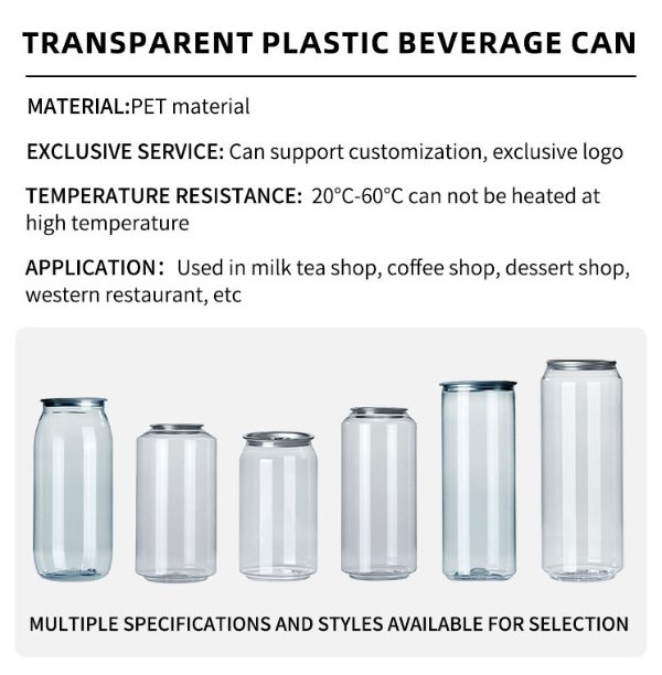 Customized PET Transparent Plastic Can 250ml 330ml 500ml & 650ml Clear Plastic Bottlefruit Cups with Lid for Coffee Soda Vodka