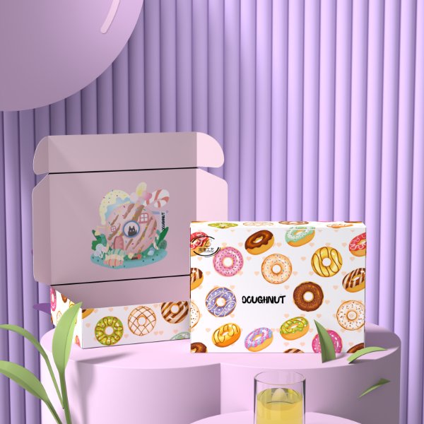 Customized Unique logo Donut Box Flexography Biodegradable and Eco- Friendly Takeaway Food Fast Food and Baking Packaging Box