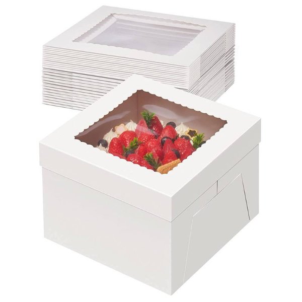 Hot Sale 8 10 12 Inch Square Cardboard Cake Boxes Tall Cake Box With Window White Bakery Boxes for Multi-Layer Cakes