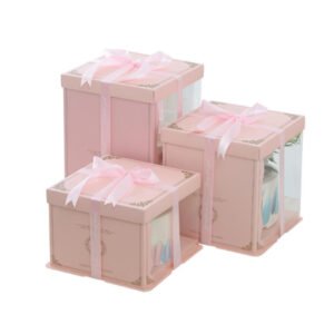 Hot Sale Pink Plastic and Paper Birthday Celebrate Cake Box 12inch Transparent Cake Boxes