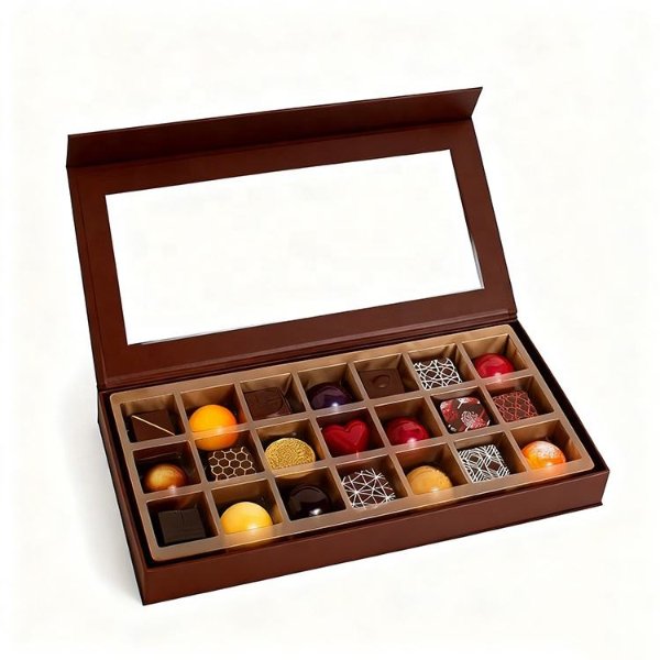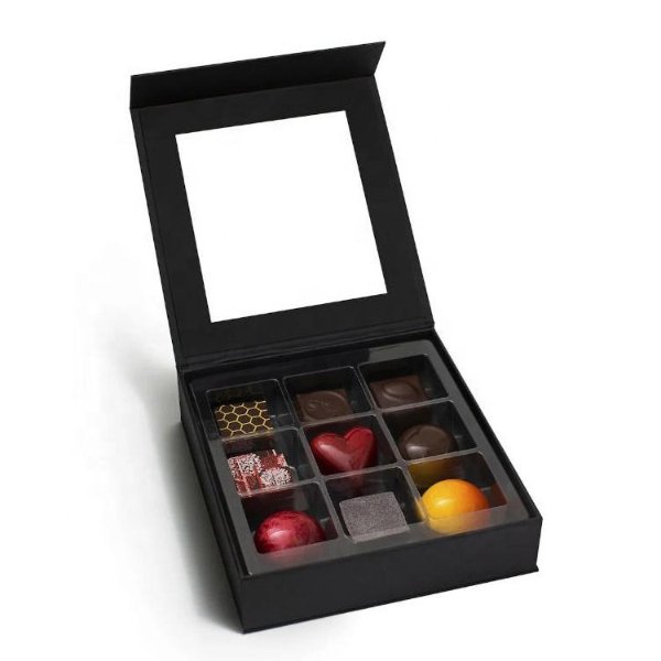 Luxury Custom logo Rigid Paper Confectionery Candy Chocolate Packaging Magnetic Gift Box with Window for Chocolates
