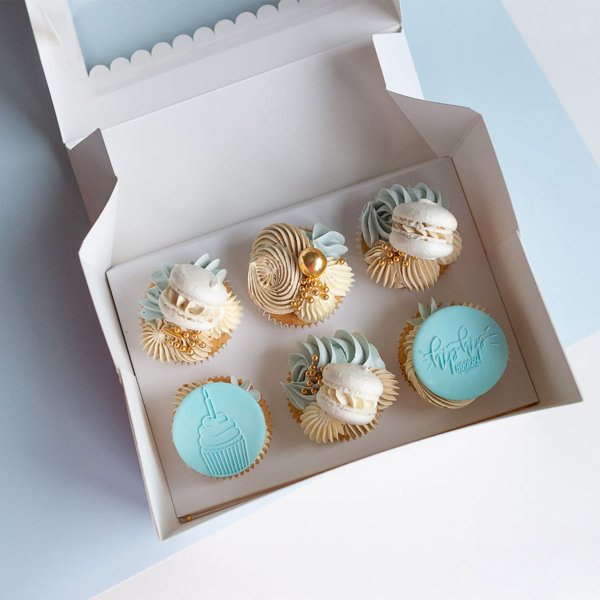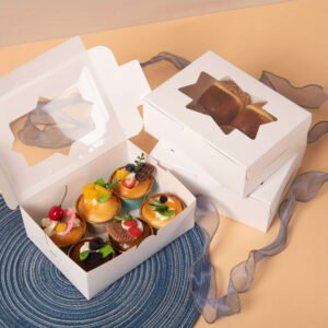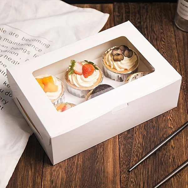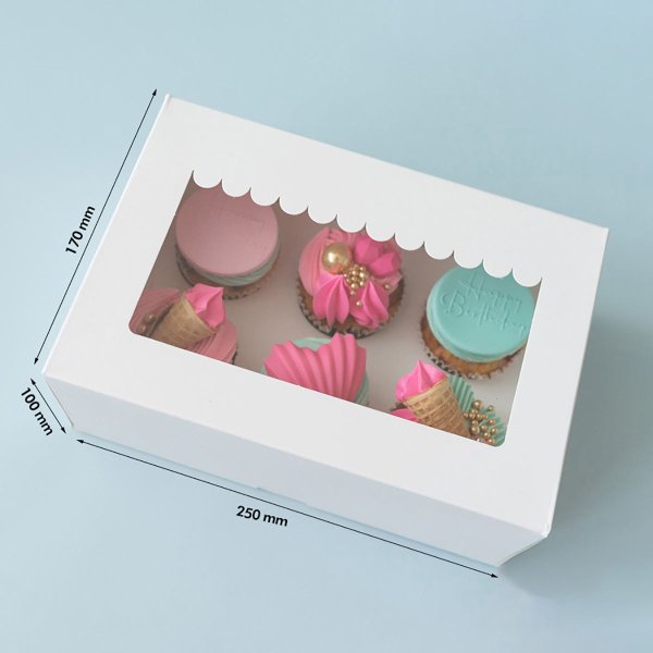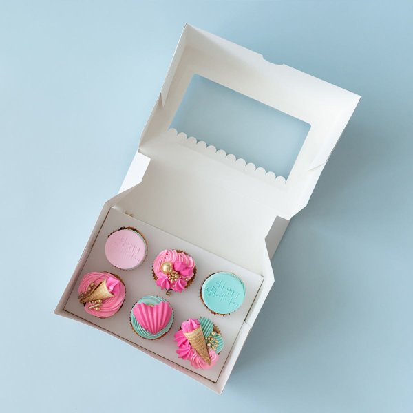 White Kraft Paper Corrugated Cupcake Box with 6-Hole Mini Size Window and Custom Printing for Weddings and Special Occasions
