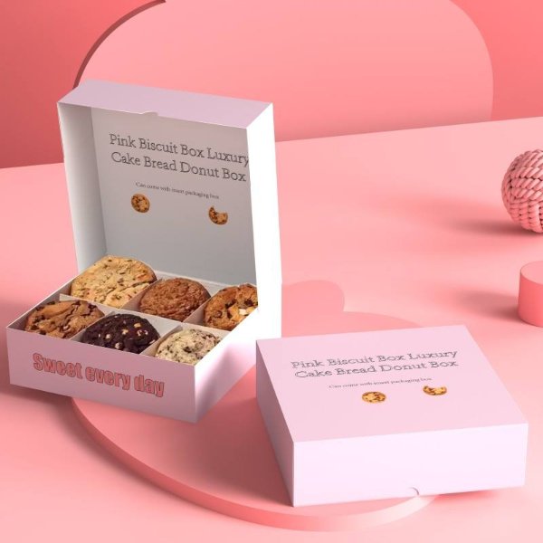 Wholesale Best-selling pink Biscuit Box Luxury Cake Bread Donuts Sushi Pastries Snacks Bread with Insert Packaging Box