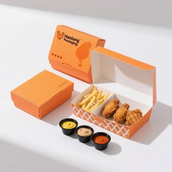 Wholesale Fried Chicken Paper Box with Customs logo Food Grade Paper Dipping Sauce Snack Boxes Potato Chips Package
